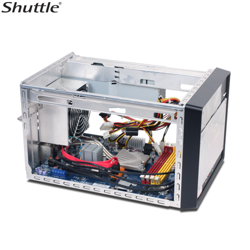 Andiamo a vedere la struttura interna di questo mini-PC prodotto da Shuttle. Come si può vedere dalle foto sottostanti, la struttura interna è stata  studiata in modo tale da installare in maniera intelligente i componenti che l'utente vorrà inserire secondo le sue esigenze. In aggiunta all'interno c'è sufficiente spazio per poter lavorare senza problemi. La disposizione interna assicura un sistema di ventilazione particolarmente efficace per tutti i componenti che in questo modo hanno sempre temperature di esercizio particolarmente basse.